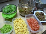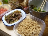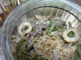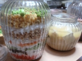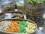 ホームパーティを計画中のKさんからのご相談で 七色のジャー丼を作りました ほかに、いもの茎のキンピラパスタに入れると美味しいのだそうです エソのつみれ汁 華やかさと意外性を演出して、ジャーで準備しました きんぴらは先日いただいた「マルサンの甘口醤油」で味付けしました 醤油は丼の鶏そぼろわさび菜のゴマ和えにも使いました 七色丼は ①鶏そぼろ ②いんげんのナムル ③塩昆布 ④炒り卵 ⑤枝豆 ⑥桜エビ ⑦人参シリシリ そうめんのつけ汁(kさんのリクエスト) 肉類はすべて塩麴を揉み込んで10~30分置きました 主人のお弁当は残り物で四色丼(@_@;) 具に甘みがほしかったので、ホシサンの甘口醤油を使いました 砂糖は使用しませんでしたが、期待の味がだせました(^^)v ジャー丼はかき混ぜて食べていただくようお願いしましたが、食べにくかったかな? おいしかったと連絡がありましたが、味が複雑になったのでは?と心配です 一つ一つの具材は美味しかったのですが(^^♪ 相変わらず、主人のお弁当に対する反応は聞けませんでした他のことはよくしゃべるのに(@_@;) 九州熊本の味噌醤油醸造元ホシサンファンサイト参加中 続きを見る
