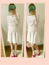 hi先日、夢展望さんから素敵なお届け物が届きました(⋈・◡・)✰リブボーダースクエアニットトップスです!薄手のニットなので長い時期着れるとおもいます!私はピンク系をレポさせて頂きます(๑˃̵ᴗ˂̵)و ̑̑加工無しの色合い↓↓ウエストは丈が長くもなく、短くもないからインもアウトもしやすく気になるお腹、腰回りも体型カバー出来ると思います!152センチの私が着てみてこれくらい↓↓スカートにも合うしあえてのサロペットで合わせてみました!!こちらのニットはカラーも豊富やし、ミント系も気になってます!(`ω´)着やすく、色合いも型も可愛いからお気に入り!!(˘︶˘)♡夢展望さんありがとうございます!良かったら覗いてみてください٩̋(๑˃́ꇴ˂̀๑)ではではまたね夢展望ファンサイト参加中