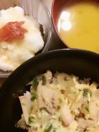 糖尿病の 実母の為に徐々に メニューを 考え直して行きます月曜日の献立鶏肉と椎茸の煮物 ジャーマンポテト 味噌汁(かぼちゃ) モズク酢今日は、お弁当を簡単に作