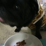 ドライフードのおまけも美味しそうな匂いがしたのか、寄ってきましたニコニコ