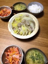 休みの日はできる限り手を抜き、あわよくば夫に作ってもらうことを企んでいる私ですが、今日は私が準備しました 外出先から帰宅し30分で準備した晩ご飯白菜と豚バラ肉の重ね蒸し 青ネギ、えのき、卵の味噌汁 にんじんとカラムーチョのマヨサラダ 白飯 写真は手前が私は、奥が夫でメインは二人でつつきましたセンターにはcoopの冷凍シューマイ重ね蒸しはテキトーにコンソメを振りいれただけですが、夫はこれが大好きで、〆にはスープをご飯に投入して食べていました タジン鍋、場所とるけど重宝しています私はタジン鍋で蒸す野菜が他の蒸し器と比べても一番好きだな野菜がとにかくトロトロになります 先週3回も4回もスーパーへ行ったので冷蔵庫がホクホクです来週はちょっとセーブしないとな にほんブログ村 【テーブルマーク】謹賀新年!!テーブルマーク商品詰合せ福袋♪ 続きを見る ['close']