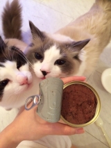 グッドスマイルインターナショナルファンサイト参加中早速モニターが当たって嬉しいー!説明読むと鹿肉とか結構変わったものが入ってるみたいむむ…うちの猫ちゃん食べるか心配だけどとりあえず猫に報告する猫缶食べる人ー?なになに?って感じで2匹ともクンクンお…?……温めてみたりマタタビかけたり鰹節かけたりしたけど1口も食べてくれなかった(((;°▽°))残り2缶は食べてくれるといいなぁ… 続きを見る