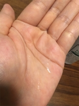 きめ細かい液体で、上の手のところから指につけてみると、糸を引くように伸びましたこのくらいの量で、私の大きな顔でも潤いましたよ(笑)