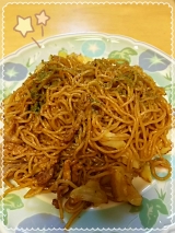 焼そばにかけてみました