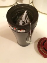 バッグをタンブラーに入れ、網目にお湯を注ぐだけで出来上がりー