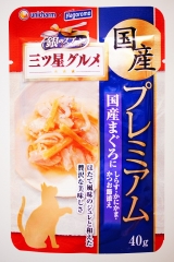 銀のスプーン 三ツ星グルメパウチ 国産プレミアム 国産まぐろにささみかにかまかつお節添えをモニターで食べてもらいました 原材料は 魚介類(まぐろ、ホタテエキス、鰹節)、ささみ、かに風味かまぼこ、調味料、増粘安定剤(加工デンプン、増粘多糖類)です食い付きが良く 2匹とも良い顔で食べていますが器の側面に付いたのが若干取りにくそう「はっしまった美味し過ぎて自分の分ではない皿にまでつい口が」コジマ 続きを見る