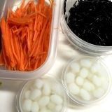 今日は一口サイズで可愛いこんにゃくの実を使って作り置き1パック30gという便利な小分けで♪28カロリーというのが嬉しいところまずは煮物から♪《材料》 人参/1/2本ひじき/ふたつまみこんにゃくの実/3パック醤油/大さじ2みりん/大さじ2だし汁/200ccごま油/小さじ1/2《作り方》①パックからこんにゃくの実を取り出し水で軽くすすぐ人参は千切り、ひじきは水でもどしておく ②ひじきとこんにゃくの実の水気を切り、ごま油をフライパンで熱し、具材を炒める油が絡みつやが出たらだし汁、調味料を加える③78分煮たら完成☺︎♪ほっこりする、安定の美味しさですこんにゃくの歯ごたえが好きすぎて止まらなくなってしまう笑もう1品✊辛いもの好きのパパように♪ピリうまこんにゃく笑《材料》こんにゃくの実/3パックごま油/小さじ1/2鰹節/1つまみ醤油/大さじ1みりん/小さじ2砂糖/小さじ1七味/適量《作り方》①こんにゃくの実を水で軽くすすぐ②水気を切り、フライパンにごま油を熱しこんにゃくの実中火で3分炒める③調味料を加え汁気がなくなるまで煮る④最後に、鰹節七味を加え絡めたら完成ちょっと濃い味なのでご飯も進むお弁当にもぴったりおとぎの国ファンサイト参加中 続きを見る