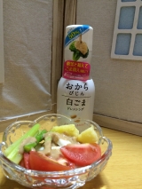 正田醤油のファンサイトファンサイト参加中正田醤油株式会社様の、おからびじん 白ごまドレッシングのモニターをさせていただいてます食べ応えのあるおからとコク深い白ごまで、ヘルシー&クリーミィに仕上げましたと、容器に書かれてありますカロリー50%OFFという事と、大豆が原料と言うことで、イソフラボンも期待出来るかも早速サラダにかけてみましたなかなかのザラザラ感で、クリーミィかなぁ?味は優しい感じです全体的には、バンドメイド風ですイソフラボンに食いついて来そうな?友人たちにもお裾分けしてみんなでヘルシーになりましょう