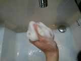 こんにちは!モニターでこちらの石鹸が当選しました本当の無添加【無添加工房OKADA】ファンサイト参加中無添加工房OKADAの石鹸!!にもちゃんが生まれて、ゆっくりお風呂に入れたのは週に3回くらい最近は一人でお風呂に入れることが多いので、月一回ゆっくり入れたらいい方一番ひどいときなんか、シャンプーをそのまま泡立て顔と体洗ってたりw今でも一人でお風呂入れるときは、頭洗って、体洗って、顔洗ってから全身流すという荒業を使っていて(もちろんリンスインシャンプーw)この前自分が体洗う時間はかってみたら、2分以下でウケました(´`)ワタシっていつの間にこんなになっちゃったんだろ昔っからお風呂はあんまり好きじゃなかったですがお化けが出そうでw半身浴したり、寒い日は肩まで使ってゆっくりしたり一万円するシャンプーやらトリートメントやら使っていたり←ブルジョワ!!!それがリンスインシャンプーで、2分以下とはとほほそんなところにモニターでこちらの洗顔石鹸が届き、久しぶりにゆっくりお風呂に入ろうと思い立ちましたちゃーんとシャンプーしたら流して!体洗ったら流して!!最後にトリートメントまでしてやりましたよ!!!ふははははちゃーんと洗っただけなのに、体も心もピカピカになったようでスッキリゆっくり肩まで湯船に浸かる幸せったらないですねー!!!やっぱり、こういう時間も必要です!こういう機会をくれたモニターには感謝ですで!!!肝心の石鹸がこちらです!!紹介するの忘れそうでしたwサンプルだったのか、実物だったのか少し小さめかな?と思いましたサイトで確認したらミニサイズの20gで価格は500円だそうな買うなら大きめの100gがいいですね!100gは1800円なので、コスパはそこそこ良いように思います専用の泡立てネットがついてたのでありがたく使わせていただくことにごしごしうーんさすが無添加!といった泡立ちですもっこもこ!!とはいきませんが充分な泡立ちかと思います↓こんな感じ顔を洗うと早めに泡がなくなっちゃいましたがちゃんと洗えました(∀)手を洗ったところ、ちょっと油感があるかな?と思いましたが顔を洗ったらそんなことなくサッパリ!オリーブオイルを使ってるらしく、保湿力は抜群だと思います化粧水なしでもイケる!!←えものすごく敏感肌なのですが、肌荒れもなしですヽ(∀)ノにきびがあるのは間違いなくストレスによるチョコどか食いのせいだと思う!!!!!ん?そういえば、ここの日焼け止めが前に当たってたような?その時の記事がこちら→無添加工房OKADA日焼け止めこの石鹸で洗うと日焼け止めもきれいに落ちるそうです赤ちゃんに使えるのはほんと嬉しい!セットで使いたいですね!そういえば、虫除けも当たってましたw無添加工房OKADA 虫除けうーん!うれしいっ\(^^)/無添加石けん岡田石けん(100gネット付)【敏感肌用】【楽ギフ_包装】価格1,800円(税抜)価格:1,944円(税込、送料込)