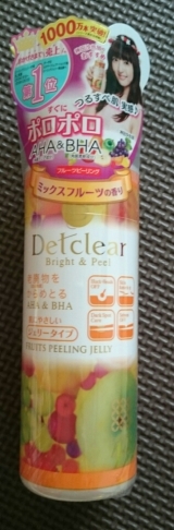 こんにちはたまーにお肌がざらざらするなってとき、ありませんか?そんなときはDETクリア ブライト&ピール ピーリングジェリーでピーリング肌にのせて軽くマッサージするだけで老廃物(古い角質)をからめて除去すぐにポロポロとれるピーリングジェリー残存メラニンを含んだ古い角質を除去し、化粧水や美容液などの浸透力をアップし、お肌の透明感も高めますそして毛穴の黒ずみケアにも!小鼻などのくすみや黒ずみの気になる部分を集中的にケアでき、お肌の悩みを解消ぬれた手でも使用OKまずは、肌をきれいに洗顔します適量(35プッシュ)を手に取り、目や唇の周りを避け、気になる部分へやさしくマッサージするようにのばしますミックスフルーツの香りがとってもジューシーポロポロと汚れが落ちたら、すすぎ残しのないように十分に洗い流します以前使っていたものは、何度すすいでも肌に残っていて、洗い流すのに時間がかかっていましたが、このピーリングジェリーは、すぐにつるんっとポロポロが落ちましたこのポロポロもかためではなく、ジェルのような感じお肌に負担をかけている感じが全くないです天然由来成分なので、きっとお肌にやさしいですねそしてなんと、濡れていても使えるということなので、さっそく手で試してみましたまずは手をしっかりと濡らしてワンプッシュ(ちょっと多すぎた)乾いた肌のときよりも、少し時間がかかりましたが、しっかりとポロポロできました濡れた肌でも使えるのは嬉しいですよね!乾いた肌に、ってあると洗顔後にしっかりとタオルで水分を拭き取ってから使わないといけないので、湿気が充満しているお風呂では使う気が起こらなかったのですが(正直、拭くのもめんどくさい)、これならお風呂でがんがん使えるお風呂から出たときにはもう、お肌がつるんつるんだと、化粧水をつけるのもわくわくしますね朝の洗顔前に使うと化粧ノリがよくなるそうですよとってもやさしくて気持ちがいいピーリングですが、やはり週12回の使用で、力を入れすぎないように、とのことです気になった方はぜひチェックしてみてくださいね明色化粧品(桃谷順天館グループ)ファンサイト参加中神田沙也加さん出演 明色化粧品 新CM 続きを見る ['close']