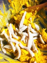 モニターさせていただいた、アマタケのサラダチキン!チーズ味と燻製風 どっちも美味しそう!これを使ってハロウィンレシピを作りました 「南部どり」ファンサイト 参加中 まずは、おばけのパンプキンチキンサラダ ゆずに手伝ってもらいました 茹でたカボチャを潰してもらいます 我が家のカボチャサラダ、よく煮物をリメイクして作ります美味しくできますよ〜! カボチャにお酢と塩コショウ、牛乳とマヨネーズなめらかなサラダにします そしたら、アマタケのサラダチキンを加えます今回はチーズ味を入れてみました はんぺんでおばけも作ってみました 目は黒ゴマ、ほっぺはケチャップかわい〜笑 盛り付けて完成!! なめらかなパンプキンサラダに、チキンがいいアクセントになってます 続きまして、カボチャとサラダチキン入りのおばけかき揚げ! カボチャとサラダチキン、玉ねぎやピーマンなどが入ってます焦げました← サラダチキンが入ってるから、旨みがアップしてます どーん! 子どもたちは、うどん病み上がりのゆずが「おうどんたべたい!」と ここにもサラダチキンとおばけはんぺんをトッピングあとはカラフルな野菜麸です 子どもたち、よろこんで食べてました ちなみに、旦那さんのお酒のおつまみにそのまま切って出しました旦那さんは燻製風が好きみたいです サラダチキンハマってますよね私も大好きです冷蔵庫にあると1品助かるし、これからも買いたいと思います(^^)/ iPhoneから送信 続きを見る ['close']
