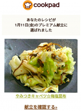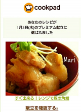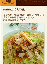 1年前に投稿した私のお料理をメールにて、お知らせ頂きました