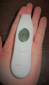 モニプラファンブログBabySmileファンサイト参加中今回は、シースター株式会社さんのこめかみで計測可能な皮膚赤外線体温計のモニターに参加させて頂きますうちの子は、生まれてから、わきで挟んで計測する、一般的な体温計が大っ嫌いで、親の私たち夫婦が一回でまともに計測できたことはあまりありませんでした例えば、集団健診で体温計測の5回以上計測やり直しになり、十番ほど健診の順番が遅くなってしまったり、色々な予防接種前の体温計測では、暴れるあまりに毎回微熱判定になり、十分後にもう一度計測のやり直しになるなど、親も子も体温計測前には身構えたり、憂鬱になっていましたうちの手持ちの体温計は10秒で判定する比較的計測時間が短いものにもかかわらず、苦手なようなので、これはもうどうしようもないと思っていたのです思えば、出産後一日目の体温計測を見ていても、子は非常に嫌がっていたように記憶していますシースター株式会社さんより届いた品を確認したところ、手のひらにおさまる、とても小さい機器であったのでビックリしました小さい機器ですが、液晶部分が大きく、とても見やすいですそして、スタンド付きなので、親の手の届くところに置いておけば、いつでも気軽に計測が可能です暗いところでも、液晶が光るので、子供が寝ている時でも計測可能ですし、計測音のオンオフが出来るところも嬉しいです使用感ですが、うちの子は、とても不思議そうに機器を見つめ、こめかみにあてて計測中も暴れる間もなく、計測が終わりました今までの格闘はなんだったのだと思うくらい、あっさりと計測は終わります大人が計測しても、とても早く計測できて便利でした我が家では、リビングに設置し、室温計機能も使用させて頂いておりますシースター株式会社さん、モニターさせて頂き、誠にありがとうございました!ベビースマイルショップ