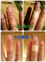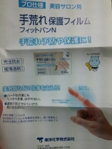 皆さま、昨日から仕事初めですねなぜだか、うちの店舗は昨日今日とまだお正月!?と錯覚させられるくらいのお客さん…売り場崩壊しております…( ̄▽ ̄;)さてさて東洋化学のファンサイトファンサイト参加中本日はモニター記事です東洋化学さんの手荒れ保護フィルム!ちょっと写真じゃ分かりにくいかなぁ…透明なんだけど、うすーく肌色も入ってるちょうど右手にひび割れができたので左手には絆創膏を貼って比較してみました一瞬、どこに張ったんだかわからないくらいの馴染み感これが本当に薄くて、薄くて!空気を入れないように貼るのはちょっと大変でしたが…最初、関節部分に貼ったら突っ張る感じがあったので指曲げたりしたらすぐ駄目になるかな…なんて思っていたのですが…時間が経つとフィット感アップ!突っ張る感じもなくなり何かを貼ってるっていう感覚もない!水仕事も水が侵入することなくシッカリ傷をガード!絆創膏はやはりガーゼ部分やちょっとの隙間から水侵入…通常の絆創膏サイズよりも大きめで使いやすい!確かにこれは水を使う仕事の方には良いかも!ただ…傷口がグジュグジュしてたり出血してる場合は使えないそうですサンプルがあと2枚あるのでまたひび割れに使おうと思います♪東洋化学さんありがとうございました♪