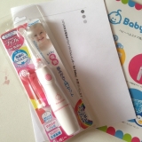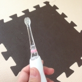 モニプラさんのモニター企画で赤ちゃん向けの電動歯ブラシを使用しました!"プチブルレインボーfor Baby"実は私、赤ちゃん向けの電動歯ブラシの存在を今回初めて知りました(^^;)赤ちゃんに電動って大丈夫なの?なんて思いましたが…LEDライトで口の中が見える?7色に光って子供が喜ぶ?なにそれ便利そう!早速、歯磨き嫌いの1歳息子に使用してみました〓〓マッサージ用の柔らかヘッドと、歯ブラシタイプのヘッドが付いています操作は真ん中のボタンを押すだけ!とってもわかりやすいです(^^)1度押すと7色にピカピカ光り、2度目で白く光り歯ブラシがぶるぶる震えます30秒に1度 ブルッ と合図があるのもどのくらい磨いたか分かるので便利な機能です!子供が嫌がっているとどうしても”もういいか…磨けただろう”と言う気持ちになるのでしっかり30秒は磨く!と意識できます(^^)うちの子は上が4本、下が2本歯が生えてきているので、歯ブラシタイプをメインで使うことに普段は歯ブラシが大っ嫌いで、私が歯ブラシを持って向かうとさささと逃げていきます…本当に素早い!プチブルを持って7色に光らせた状態で近づくと、おもちゃと思ったのかニコニコ〓〓私から奪い取って、遊びだしました 歯磨き用のジェルをつけて渡すと口に入れて噛み噛みもちろんそれだけでは磨いたことにならないので(^^;)その後、私がササッと仕上げ磨き〓使う前はわからなかったけれど、振動があるので私自身がゴシゴシ歯ブラシを揺らさなくて良いのがすごく楽でした!うちの子は逃げるので(^^;)少しの間でもジッとさせるのが難しい!電動歯ブラシなら振動してくれているので、あとは歯をなぞるだけ〓〓ピカピカ光るので気を引いてササッと歯磨きできちゃいます現在2週間ほど使用しましたが、やっぱり光っている歯ブラシを見ると息子がよってきます(^^;)しめしめ…と歯磨きするのですが…以前は逃げ惑う息子を捕まえて、格闘のように歯磨きしていたなあ、大変だったなあ〓〓赤ちゃん用の電動歯ブラシ、知らなかったのがもったいなかったな歯磨きって1日の中で何度もあることで、子供が嫌がるととっても体力消耗します〓歯磨きがササッと楽しくできるようになったので、少し心の余裕も出てきた…ような気も!!対象年齢は2歳までとなっていますが、これからも使い続けていきたいと思える商品です(^^)歯磨き嫌いの赤ちゃんにはお勧めの歯ブラシでした〓〓BabySmileファンサイト参加中 続きを見る