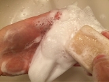 この度、アンティアンさんの手作り洗顔石鹸ラベンダーハニー のモニターに参加させて頂きました 40g 1,143円 商品の説明 肌本来のバランスを整え、うるおいを保つホホバオイルをベースに、優れた保湿力を持つはちみつを配合した洗顔石けん 柔らかくしっとりとやさしい洗い上がりです この石鹸、メイクも落とせちゃいます 美白の蜂蜜も入っていてお肌のコンディションを整えてくれます 包みを開けてみると ふわーっとラベンダーの香りが漂います 良い香り 手のひらサイズの大きさです 早速使ってみました 泡立ちもいいです 使ってみた感想は、洗い上がりはすっきりですが ツッパリ感はありません メイクもきちんと落とせました この石鹸は植物原料だけで、手間隙をかけて作られた肌にも環境にも優しい こだわりの手作り石鹸です 敏感肌の方にも安心して使っていただけるように作り上げられているので 幅広く使って頂けると思います 私もこれから洗顔時に楽しみに… 続きを見る