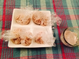 器にラップを引いて少しずつ流し入れ、口を絞って一口サイズにしてもいいと思います