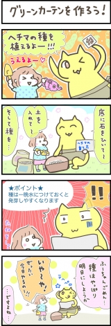 こんにちは、猫子ですすっかり暑くなりましたね5月だというのに既に汗だくです…夏本番はどうなっちゃうの…!今年の夏は育休なので、家にいる機会が多くなる…冷房費が気になるところですというわけでグリーンカーテンの栽培を始めてみました!【ネオナチュラルヘチマで壁面緑化運動】こちらで種をもらいました♪猫子は花のお世話苦手ですぐ枯らしてしまう人間なんですが、がんばります…!ヘチマの実は化粧水や入浴剤にしたり、タワシにしたり、料理にも使えるみたいです食べれるんだ…!ゴーヤみたいな味なのかな?ドキドキちゃんと読んでから始めましょう(^q^)もう埋める気まんまんのお嬢さんを泣かすのはかわいそうなので、結局、申し訳程度に…15分ほど水につけました笑ちなみに花壇は友達の植木屋さんにおまかせしましたピンクのアジサイ、こんなに綺麗だったのに今は枯れかけててピンチです…!(;ω;)花のお世話難しいよ!!埋めて、たっぷりお水をあげますそして、1週間経過…2週間経過…芽がでない…orzやはり15分水に浸けただけでは無意味だったか…「ヘチマ 芽がでない」で検索をかけると、「撒く前に一晩水に浸せ」という既知のアンサーが出てきて切なくなる猫子…(^q^)しかし16日目!ついに芽が出ました!!かわいふたばって健気ですね(´∀`)そして種まきから1ヶ月ところせまし!!笑発芽率は13/20南側に置いてた鉢の方がいっぱい芽が出ました藁部分が乱れてるのは鳥の仕業?鳥に食べられた種もあるかも…(ω|||)カラス多いんだよねこの辺…植え替え広くなった♪100均でプランター3つ買い足し調べてみた感じだと、1窓につきヘチマ2,3株で十分みたいですねカーテン作りたい窓は2箇所なので、過剰かもあ、エアコンの室外機も覆ってみようかな?本葉はたくましいオーラどんな風に育つか楽しみです次は支柱とネットをゲットしなくてはてか、どうやって固定しよう(ω;)なやむ肌の健康を応援!ネオナチュラルファンサイト参加中 応援クリックお願いします LINEスタンプ発売中! 親子にゃんこの日常 By にゃざっく 続きを見る ['close']