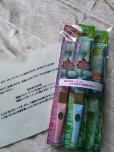 こんにちは、グルーヴですいつもご覧いただき、またいいねをありがとうございます KISS YOUファンサイト参加中今回モニプラ様経由でフクバデンタル株式会社様よりイオン歯ブラシKISS YOUのモニターに当選いたしましたありがとうございます じつはこのKISS YOU、以前スーパーの歯ブラシ売り場で見かけて気になっていて、その時は購入しなかったんだけど思いがけずモニターさせていただくことになりましたこの歯ブラシKISS YOUはイオンの力で歯垢を落とす歯ブラシです歯垢は唾液中のプラスイオンで歯面に吸着(架橋結合)するといわれていますこのKISS YOUは内臓電池からマイナスイオンを発生することで、架橋結合を緩ませ、歯垢の除去を容易にしますマイナスイオンが出ていることによって、歯垢除去率が23%も向上したそうです 使い方はとっても簡単柄の金属板の部分に、指または手のひらが触れるように握りブラッシングするだけKISS YOUは交換式の歯ブラシでとっても経済的バリエーションもこんなにあります自分の好みのものが選べますね♪ 使ってみて、力を入れなくてもきれいに歯垢がとれつるつるになっちゃいます歯磨き粉を付けなくてもいいそうです(私はつけちゃいましたが(^^; ) 使ってみたかったKISS YOUお試しさせていただいてフクバデンタル株式会社様、モニプラ様ありがとうございました 続きを見る ['close']