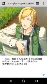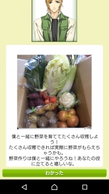 腐女子妊婦、最近腐女子やってないよねってことで…ラブとみ【恋するイケメン農園トミーファーム】プレイモニターがあったので、さっそくやってみることに!いつもはBLだが今回は乙女になるよ!まずはまったりプロローグ(^^)肝心なパートナー選択❇絵が綺麗とか性格がしっかりわかれてるとか褒めポイントがたくさんありますがここで一つだけ…年齢層高くねw?30、29、26歳…全員年上という壁がたちはだかりましたショタよりおじフェチ向きですなとりあえずS野郎は苦手なので一番優しそうな大地さんに決定(´∀`)♪このゲームの魅力はなんといってもイケメンと農業体験できることに加え…実際に野菜をもらえること!!登録費、課金のかかるゲームなどでは釣りすると実際に魚な家に届くよなどというのを見たことはありますが、これ課金もできるけど基本は無料ゲーだからね流れは簡単種→水→草→虫→収穫の5ステップ水、草、虫は簡単なミニゲームになっています!個人的に草がちょっと難しい、ツムツム得意な人はやりやすいかも(о´∀`о)こいつ…わさわさ動くぞ…!!!チャプターはしっかり彼が説明してくれます!できると褒めてくれますヽ(∀)ノヤッター途中イベントもしっかりはいってる!!個人的に便利だと思ったのがこれイケメンが説明してくれる野菜の育て方さすが農園なだけあって結構がっつりした説明でためになります!ただ全部文章説明なので下の空いているスペースでもいいから使うもの箇条書きで表示してあったら嬉しいなぁ(;>_<;)あと最後にチュートリアルのように流れとかをおさらいしてくれたりこれもすごい!!実際に体験できちゃう✨すっごく行きたいけど8ヶ月の妊婦が行ったとこで役に立たなそうなので見送り…産まれたら子供とか連れて行ってあげたいな(´ω`)ちなみに今月ランクインでもらえる野菜はタケノコでしたヽ(∀)ノなんだかんだで結構たのしんでます♥今後期待なのが…①ボイス、BGMをいれてほしい!!②ブラウザではなくアプリにして欲しい!③上部にホームアイコンなどを充実させて分かりやすく、スムーズにできるようにしてほしい!!って感じです( ∇)特に音系は欲しい、無音って結構さみしいもんですとりあえずランクイン目指してがんばりますv(∀)「ラブとみ」をプレイし感想を書いて【山武いちごプリン4個入り】をGET! ←参加中 続きを見る ['close']