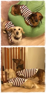 こんにちは~♪ご無沙汰すぎてスミマセン!お引越しは無事に完了したのですが私が胃腸風邪で数日間ダウンしてました荷ほどきとかもろもろの契約とか設定とかやらなきゃいけないのに進まず…辛かったぁぁぁ体調もやっと戻りミシン仕事も再開しましたわんこたちも徐々に新しい場所に慣れてきて生活パターンが安定してきましたオリコウサンにはご褒美を♫先日モニプラさんより届いた商品です!【おやつでハミガキ!】うれしいおやつデンタルケア馬皮ガム 骨型6本入りコジマ通信販売ファンコミュニティファンサイトお初のニオイにクンクン♪割と慎重にチェックした後はガシガシとあっという間にゴチソウサマでした牛皮のガムも何度か与えた事はあるのですがどうしてもウ〇チが緩くなってしまうので低アレルギーの馬皮に期待です!さて!掲載が遅くなってしまいましたがお客様わんこの紹介ですあおいちゃん♡レノックスくんトリコボーダーをオソロでご注文頂きました♪ダックスさんはカジュアルが似合いますよねふたりとも可愛いです(^^)ルフィちゃん♡いつもありがとうございます♪スリムなサイズでお作りしました!似合ってます♡夏場でもエアコンの冷えや紫外線、皮膚の保護にお洋服を活用してくださいませチョキチョキ縫い縫いのお部屋も新しく整ったので6月中には新作UPしますお楽しみにPickney 〈minne〉https//minnecom/pickney1529