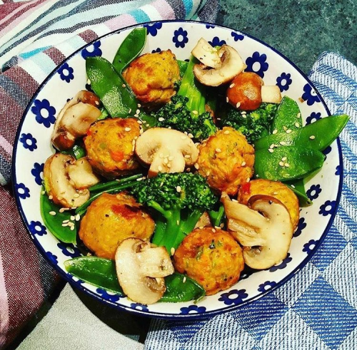 キノコ、厚揚げ、さやえんどう、ブロッコリーをオリーブオイルと白ごまで和えて作りました