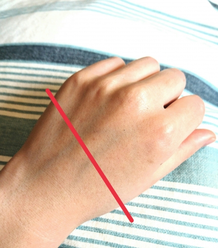 お粉の見た目は白っぽいですが、肌馴染みもよく、白浮きしません手にも塗って確認してみました手首側が塗ってあり、指側が塗ってないのですがそれすらもわからないくらい馴染みます♪