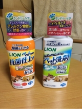 こんにちわ!div>今回はモニター商品のご紹介をしたいと思います 紹介する商品はこちらの2点です! ペット特有のニオイも菌もスッキリ!ペット用品の洗剤仕上げ剤♡ 内容量は洗剤400g、仕上げ剤360gとなっています ペット用品にしか使わないので使用量は少なくてすむし、長く使えそうな大容量ボトルでお得ですね 私の癒し家族をご紹介しますねっ ペットはほんと可愛いですよね♡ ずーっといい匂いでいてほしいと願う 大事な私の癒し家族たちですっ! 私はフェレットと犬と一緒に暮らしていますが、ペット用品の洗濯には悩みがつきません ペット用品と人の衣服を一緒に洗いたくなくてペット用品を洗うときはペットのシャンプーで洗濯していました笑 どうしてもどんな洗剤を使ってもペット特有の匂いが消えないので、諦め半分シャンプーで代用して早四年、、、 この商品に出会い使用してみることに なんとこの洗剤と仕上げには匂いだけでなくペット特有の菌も除菌してくれるという嬉しいポイントがあるのです 実際に使用してみると、普段の洗濯時には味わえない毛の落ち具合を体験できました いつも通りに洗濯しているだけなのに、 毛がほとんどのこっていないことに驚きです! 私は手洗い派なのでもみ洗いをしたのですが、 指で毛をつまんで取るという動作をしなくてもいいので楽チンでした 洗い終わり仕上げ剤を使ってみたら、香りの良さに感激しました 人の衣服にも使いたいと思うほどのいい香りでツルツル感もしっかりあり、リンスでコーティングされているかのような手触りでした この仕上げ剤にはダニの死骸やフンの付着を防ぐ効果もあるのでペットに優しくて安心して使用できますっ!!! メーカーもライオン商事なので安心して購入できるし、日本で製造させているので信頼がおけるのも魅力だと感じました 先ほどしっかりと乾かしたあと触ってみたら ふわふわの仕上がりでとても嬉しくなりました 驚くほどペット特有のニオイがなくなっていて新しく買い換えたような気分になり、さっそく今使用しているものと取り替えてあげようと思いますっ!! この度はペット特有のニオイも落ち、除菌効果もある洗剤、仕上げ剤に出会わせてくれたことに感謝いたします 洗濯する飼い主にも優しく、使うペットたちにも優しい洗剤、仕上げ剤を見つけることができてとても嬉しいです! ぜひリピートして使い続けたいと思います! 続きを見る