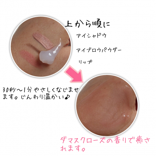 半透明のジェルを肌になじませていくとじんわり温かくなりますくるくるマッサージしているとメイクもしっかりオフできていましたダマスクローズの香りで癒されながらメイクオフできるのでと 続きを見る