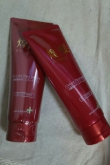 モニター中のKIRARI、使い始めてもう2週間超えました> こちらのKIRARIは、白髪染めとかヘアカラーではなくてカラートリートメントなので、 毎日のシャンプー時に使います 使い方はシャンプー前にトリートメントを塗っておいて、 10分位たってからシャワーで洗い流します 水に色がつかなくなってから、いつも通りにシャンプーです KIRARIはべたべたしたクリーム状で髪につけた後は垂れてきたりしないので、 10分くらい放置の間はなんでも出来ますよ 日常使いだからこのへん大事ですよね 私はお部屋でトリートメントしながらTVを見たり、 湯船の中でトリートメントしたりという感じですが、 頭からぬぐお洋服を着たままだと、脱げなくなっちゃうので気を付けて下さいね! 私が使っているのはダークブラウン 使用量は部分染(根元、生え際)の場合、ゴルフボール約1個分髪全体でショートヘアの場合、ゴルフボール約2個分 長い髪で全体には約34個分と必要になります 私の場合は、ショートヘアではないですけども、あごのライン位のショートボブなので全体でゴルフボール2個分位で足りる感じです 白髪の気になる範囲で言うと、前面の生え際だけでよさそうかと思うので、重点的にべったり塗ってるのは、ほぼ額から頭頂部からの生え際だけです 髪全体には薄く広げる程度 でもトリートメント効果ですっごいしっとり! 今使っているシャンプーがトリートメントを必要としないタイプのものなので洗う時シャンプーオンリーなんですけども、KIRARIをシャンプー前に使うようになってから、さらさらの洗い上がりにしっとり感がプラスされてとってもよい感じ♪ 染料は植物由来(ウコン、シコン)成分使用で、匂いもほんのりいい香りです美容成分が18種類(ガゴメ昆布(フコイダン)、プロビタミンB5(パンテノール)、アミノ酸、シア脂、オリーブ果実油などなど)髪にいいうるおいを与えてくれている感じがします さてカラートリートメントなので、とっても大事な染まり具合ですが、 今、こんな感じです どうでしょうか 自分的には、いつも前髪の分け目に目立って気になる白いやつ何本かが 全然目立たなくなってきて嬉しい限り カメラに収めようとしてあれ、どこ行ったかな、と探す位になりましたよ よーく見ると、他の髪に比べて薄い茶色という感じの髪がいつものところに2、3本あって あ、こいつだ!とわかるのですが、 白髪だっ!って感じではなくなったので全然気にならないです 嬉しい(^^) また報告します マリアンナ化粧品ファンサイトファンサイト参加中 続きを見る