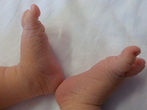 生まれたばかりの頃、ガニ股でねんねする赤ちゃんの足が「V」型に♪ 思わず、文字を付け加えて「LOVE」を作った、いい思い出