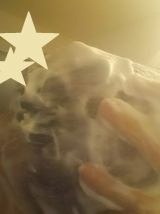「アンティアン 無添加手作り洗顔石鹸 "漆黒"」 との出会いがありました(≧∇≦)♪onejp/user_image/5d/3a/8e164c0df1b3c932d80fd4cd6d46001bjpg" alt="" border="0" /> 肌ケアに迷いし、子羊たちよ あ、いきなりごめんなさい この真っ黒な石鹸を見ていたらつい(汗) だっていつものアンティアンさんの石鹸と違うんだもの アンティアンさんの石鹸と言えば、代表的な「ラベンダーハニー石鹸」をはじめ、真っ白な石鹸ばかり 着色してないからね (他の石鹸はコチラ) だけども、だけど 今回は黒しかも「The!漆黒」いつものイメージと違ってなんだかダークだわ 漆黒思わずググる私 ■■■ 漆黒 ■■■ つややかな黒 純粋な黒 まったく光が存在しない世界をイメージ ですってということでいつもとは違う冒頭で始まりました なぜ黒いのかというと、スクラブ材として15ミクロンの竹炭をたっぷり配合してあるから 竹炭は皮脂汚れや、落ちにくい日焼け止め、毛穴の黒ずみ等も落としてくれる効果があるとのこと 15ミクロンかミクロン どのくらい小さいのか、皆様わかりますか?私はわかりません(苦笑) ここで早くも二度目のググり 1ミクロン=1000分の1ミリ だそうですということは15ミクロンだと、えーと、ものすごくちっちゃいということです(汗) では例のごとく、成分チェックから参りましょう アンティアンさんの製品は毎回必ずチェックするようにしています え、なぜかって? それは見事な成分だからです 水と油脂だけうん、今回もお見事! 界面活性剤防腐剤人工香料等は一切不使用 うーん、何回見ても惚れ惚れする成分♪ うっとり♪ 成分を眺めるだけでアハ体験ができるというか、気持ちいい物質が脳内をかけめぐってます シンプルだからこそ、ごまかしのきかない原料と製法(コールドプロセス法)で作られてあります 量産されている一般的な石鹸が1日で作られるとしたら、こちらの石鹸は約1ヶ月かかります 早く作られるということは化学物質を添加してごまかしたり、脂類を過熱し酸化した状態になってしまうんです では、早速開けてみましょうか 私にとって開ける時も楽しみのひとつでもあります なぜかというと、がっちりパウチされている時はまだ感じられないんですが、 パカッ パウチを開けた時、まるでおさえていたものが放たれたように香りをぶわーっと放つのです スッキリと爽快なローズマリーの香り ああ、なんて爽やかソーダの海に浸かっているようです 私自身、ローズマリーはそれほど染み入る香りではなかったはずなんですが、 大好きな石鹸についている香りだからか何度も香りを嗅いで楽しんでしまいました不思議ですねぇ 闇のように深い漆黒と、ソーダのような香りとのギャップもまた新鮮 ローズマリーは香りの良さはもちろんのこと、肌の引き締め効果もあるとのこと だろんとしがちなたるみ毛穴もきゅっと引き締まりそう ■■■ 洗い方 ■■■ 顔 → 顔をぬるま湯で濡らし、石鹸を濡れた手の中でよく伸ばし、溶け出した石鹸成分を何度も塗るように洗顔 身体 → 石鹸を直接体にこすりつけ、石鹸成分を手で伸ばして洗う これがアンティアンさんがオススメする基本の洗い方 そうです、こちらのブログでは何度も声高々にお知らせしてきましたが、一番大事なことなので重ねて強調させていただきます この石鹸の良さをフルに発揮するには、泡立てずに使用します いえ、しなければなりません なぜなら石鹸は泡で汚れを落とすのではなく、石鹸成分そのものと汚れが結びついて落としているから 石鹸は泡立つために生を受けた存在と認識していたので、最初は「そんなバカな」と否定的でした 抵抗があり、一番はじめは泡立てて洗顔 が、好奇心が押し寄せ、二度目は泡立てない方法でチャレンジしてみたのです 「!!!」 あの衝撃はいまでも忘れられません あのすべりのよい石鹸液、あの何度も触っていたくなる肌仕上がり、何もかも初めての感覚 泡立てた時の仕上がりとはどこかが違うのです それ以来アンティアンさんの石鹸はいずれも、一回も泡立てたことがありません 泡立てる洗い方は非常にもったいないからです アンティアンさんの石鹸を何個も使用してきた私には、独自の洗い方があります 私の場合、石鹸をつかみ、そのまま洗面器の中へドボンと入れて濡らします そのまま手のひらにこすって石鹸液を溶け出させます 液が出にくいのははじめのうちだけ やわらかく溶けやすい石鹸なので、2回目以降は軽い力で石鹸成分を出すことができます 何回か使用すると石鹸の表面がやわらかくなり、カドも丸くなるので、私は石鹸そのものを洗顔パフのようにそのまま顔にこすって溶かすことも これが泡にも勝る、石鹸成分 ちょっとわかりにくいのですが、竹炭で少し泡がグレー色です 肌あたりはクレンジングミルクのようなじみがとても良いのです びっくりすることにアンティアンさんの石鹸はメイクオフもできます 私はいつもダブル洗顔ナシでクレンジングしています 石鹸なのに驚きですよねぇ シン