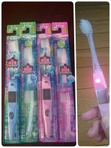 マイナスイオンの力で水だけでツルツルな歯になりましたー!使い方は柄の金属板に触れるだけだし簡単(^^)ボタンを押すと電池残量もわかるし替えブラシで経済的!!
