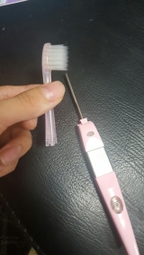 モニプラさまの当選品/79/j/o0512091213763174563jpg">KISS YOUさまの『極細レギュラー1本+替えブラシ2個と極細コンパクト1本+替えブラシ2個』です!アットコスメ第一位というシールが眩しいですね! このはぶらし、一見普通の歯ブラシに見えるのですが、実は歯磨き粉いらずなのに歯石がとれるらしいんです!(歯磨き粉を使用してもいいそうです!) なんでも、この歯ブラシからマイナスイオン(微弱電流)が発生しているらしく、それによって歯石が取れるようです!具体的になぜ、マイナスイオンで歯石が取れるかを知りたい方はKISS YOUのHPを見てくださると分かると思います! 細かいことはいいんだよ! という方はそのまま読み進めてください(笑) 今回は極細コンパクトのほうを使用してみました!歯ブラシのブラシの部分は取り外し可能で、替えのブラシと交換ができるようです!本体自体は電池式で毎日15分使用しても1年以上もつそうです!ブラシ部分を本体と合わせるとこんな感じです!この上の銀の部分を持つとマイナスイオンが流れるそうです! ちなみに開けたてなので関係ないのですが、一番下のボタンで電池があるかどうかを調べられるそうです! それでは、実際に使用してみます!微弱電流が流れるということで、痛いのではないか、なんて少し不安だったのですが、そんなことはありませんでした!また、見た目は電動歯ブラシみたいな感じなのかな? とも思っていたのですが、音も電動も全くなく、使用している最中は普通の歯ブラシのように感じました ちょっと写真では見ずらいのですが、ブラシは段になっており、かつ毛が細いので歯と歯の間、歯と歯茎の間に届きます! ブラシの硬さは「ふつう」と書かれていたのですが、私にはちょっと固めに感じましたたぶん、ふつうの歯ブラシの固めとふつうの間ぐらいの方さだと思います!(もしかしたら、毛が歯と歯茎の境目をしっかりと磨けるから硬く感じるのかもしれませんが) 歯茎の弱い方向けにやわらかめもおいているそうなので、やわらかめふつうの硬さが好みの方はそちらの購入をおすすめします! そして、肝心の磨き終わり! すごくいいです!歯間ブラシを使用したように歯と歯の間の汚れが取れており、歯と歯茎の間の汚れもしっかりと取れています!舌触りもざらつきがなく、つるつるで気持ちがいいです!これからも使用したいなと思いました! 私が絶賛していたところ、母も使用してみたいということなので、もう一つの青は母に使用してもらいます(笑) KISS YOUファンサイト参加中 続きを見る ['close']