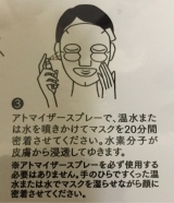 付いてきたアトマイザーに水や温水を入れてマスクを湿らせる…のですが、アトマイザーをつかわなくてもOKらしいので、私は手で温水をすくいパシャパシャとしました