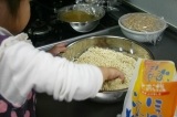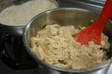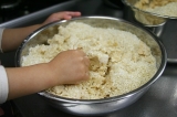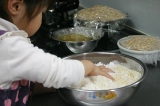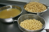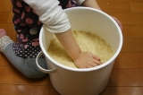 こんばんわ気づけば4月も、もう後半 w(゚o゚)w今年は子供たちの入園、入学があり、どうなることかとドキドキしていたけれど始まってみるとあっという間に日々が過ぎていきます子供を寝かしつけてから、あれを!これを!と思っていても自然と降りてくる瞼のシャッター(;´∀`)明日は息子の小学校の家庭訪問に明後日は娘の幼稚園の親子遠足!母ももうひと頑張り!そんなこんなで遅くなってしまいましたが今日ご紹介するのは…ひかり味噌株式会社 様の自宅で味噌づくり 国産素材 みそ造りセットご縁あって長期モニターに参加させていただいております前回、仕込みの初日をアップさせていただきました今回は、2日目の様子をご紹介したいと思います初日の豆を水につけるときの様子がこちら初日は、豆を洗ってお水に浸すだけだったので本格的に作業が必要なのは2日目!!まずは朝お豆さん、おはよっと、のぞき込む娘浸漬時間は、秋冬で約18時間春夏で約10時間が目安だそうです私が仕込んだのは3月末まだ少し寒い春先なので、ちょうど中間くらいの時間お水に浸けてみましたビフォーアフター画像で比較!前夜、お水に浸した直後一晩、浸漬後のお豆さんだいぶ、ぷっくりと膨れました水面の近くまでお豆さんが上がってきましたね ヾ(o´∀`o)ノ1粒パカッと割ってみました芯は無さそう?ちゃんとお水が浸透しているかな?大丈夫そうなので、これからお豆を煮ていきます今回のセットのストッカー(野田琺瑯)は直火にかけられるのですが加熱時間が35時間と、少し時間がかかるので私は圧力鍋を使用することにしました最初は2回に分けて煮ようと思っていたのですが圧力鍋で豆を煮るときには、あまり大量には加圧できないとの注意書きを発見恐ろしくなり4回に分けて煮ました (;´∀`)最初は圧力をかけずに沸騰したらアクをとってそのあとは蓋をして加圧しました煮上がりのチェックは1粒取り出して指で潰してみて柔らかく押しつぶせるかどうかうん、OK! ♪(oω)ノ))4回に分けて煮上がりました!先に煮ていたものが少し色が濃くなってしまったような本当は1度に煮た方が良いのではないか?と思います次の作業に入るまで煮上がったお豆さんはザルにあげて人肌程度に冷ましておきます煮汁は後ほど「種水(固さを調整する水)」に使用するので200250ml取っておき、同じく人肌程度に冷ましておきますここで、いよいよ米糀さんの登場です✨お塩さんも一緒に娘もやるやる!と登場してきました ( ´ ▽ ` )ボウルに糀の全量(1kg)をあけて、人肌程度に冷ました「種水」を100ml加えて軽く混ぜますあまり強く混ぜると表面の麹菌が落ちてしまって発酵が進みにくくなることがあるとかここは母が!と思ったけど、娘さん、きっぱり、やります!とお任せしてみることに優しくお願いね♡それからお塩を後から使用する4050gほどを別の容器に移し、残りの塩を糀に加えて均一になるように混ぜ合わせますよいしょ、よいしょ、とはい、混ぜ合わせましたこちらを「塩きり糀」と呼ぶそうですでは、こちらは少し置いておいてはい、これからが体力勝負!!煮あがった大豆をつぶしていきます方法は色々あるようです機械に任せるならフードプロセッサーやひき肉を作る機械などが使用できるそうです他の道具を使う方法では、すり鉢とすりこぎ、ポテトマッシャーなどで潰していく方法もあります私は今回は、子供たちと一緒にやりたかったのでビニール袋に入れて地道に手のひらで潰していく方法をチョイス!うん、子供たち途中で飽きちゃいました (;´Д`)途中から母の孤独な作業がしばらく続き完了!母、感無量!!(笑)潰した大豆に、先に作っておいた塩きり糀を混ぜていくのですが…うちには圧力鍋とボウル以上に大きな容器が無く ( ノД`)シクシク…仕方なく2つに分けて混ぜましたうまく均一に混ざっていればいいのですが…本来ならばここで種味噌を加えれば発酵の後押しになるそうですしかし、我が家の冷蔵庫にあったお味噌は…麦味噌 (^^;)米糀のお味噌には、混ぜない方が良さそうな気がして今回は種味噌なしで!!!米糀さん、頑張って♡混ぜにくい場合はここで、取っておいた種水100150mlを少量ずつ加えて耳たぶ程度の固さになるように調整をと説明書には記載がありました固さは耳たぶと言われれば耳たぶ!あまり水分を加えるとカビが生えそうな気がして種水は加えませんでした出来上がったものを、おにぎり大の団子状に丸めていきますこれ、私もテレビとかで見たことある!!子供は、お団子づくりが好きだけど、ちょっと今回のお団子は子供の手には大きめ娘と2人、お喋りしながらお団子をたくさん作りました出来上がったお団子を琺瑯容器に詰めていきます空気を抜くように握りこぶしで押さえつけるようにきっちりと詰めていきます!テレビでは容器の中にお団子を投げつけてるシーンも見たことがあるなぁあれで空気が抜けるのかな?私はそっと入れて上からギュッギュッとしておきました詰め終わったら、表面を平らにならします表面に残