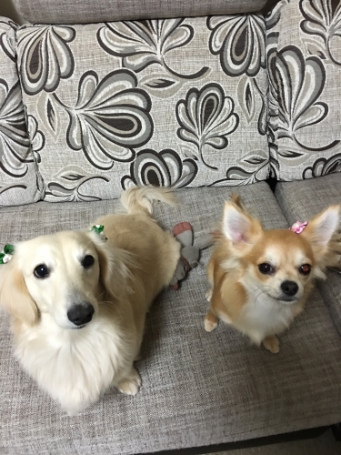 カニヘンダックスフンドの翔くんとチワワの華ちゃん パパとママがいつも一緒じゃなきゃ不安な星(きら)ちゃんです