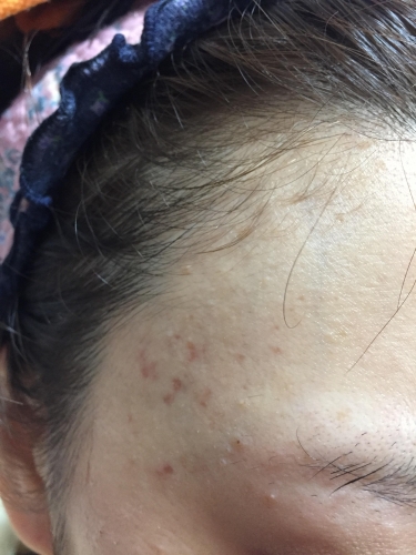 コメカミのニキビ写真はストレスにより過去最悪の大量発生したものですもっとひどい状態のがありますが色々ケアして今はこんな感じですひどい写真のは恥ずかしいのでモニターになったらブログに載せます笑