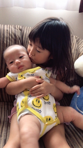 0歳5ヵ月になる弟の面倒をよくみてくれる4歳のお姉ちゃん 弟の成長を一緒に感じてくれて、弟がよく笑うようになったので嬉しいみたいです 何でもお手伝いしたい時でたまに大変だけど、一緒に寝てる姿や遊んでる姿をみると凄く幸せだなーと思います