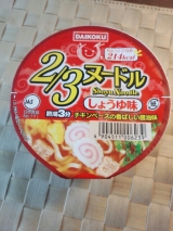こんにちはmichikoです 先日モニプラさんから;">ダイコク食品さんの「2/3ヌードル」が当選しょうゆ味と海鮮しお味をいただきました2/3ヌードルって、初めて聞いた名前だったのですが、その名の通り、・一つ食べるには多いけど、ミニサイズでは少し物足りないもう少し食べたい!ラーメンも食べて、他のものも食べたいちょっと小腹がすいたなぁという時に絶妙な食べごろサイズのカップラーメンなんですね(レギュラーカップのおよそ2/3の麺量とカロリー) で、早速お昼の一人ランチの時に海鮮しお味をいただきましたスープの素をいれて、待つこと3分スープの原材料をみると、あさりが入っているので、あっさりした中にも旨みとコクがあって美味しい! 続いてのしょうゆ味は、春休みのお昼に家族でいただきました中の具はこんな感じこちらもとても美味しかったです!チキンベースのしょうゆ味なので、パンなどとも合うかなと思いました ちなみに、しょうゆラーメンが好きな息子はこちらが気に入ったみたいです 今回はどちらもお昼に頂いたのですが、2/3という絶妙な量なので「おかずはあるけど、もう一品」という時にサブのおかず&スープ代わりになって本当に助かりました(´ω`) 関西在住の私は、ダイコク食品さんの「2/3ヌードル」をスーパーなどで見かけたことはないのですが、 ダイコクさんのオンラインショップhttp//daikokusanifanet/?mode=grp&gid=978780でも購入できるようです(^o^) 皆さんもスーパーのラーメンコーナーに行かれたら一度探してみて、ご賞味してみてくださいね ダイコク食品さんありがとうございました SANIFAN! サニファンファンサイト参加中 続きを見る ['close']