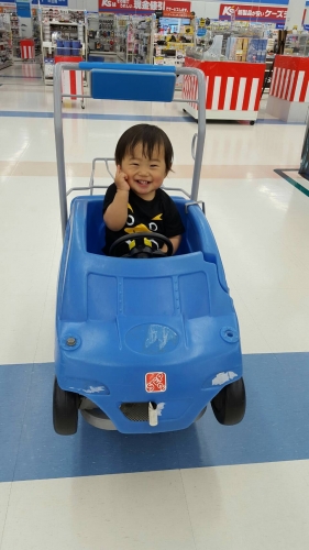 お店のカートに乗せてハイポーズ!といったら このポーズをしてくれました