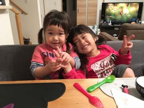 必ずお隣に座っていろいろお話しながらのご飯賑やかで笑顔が絶えない夕食です