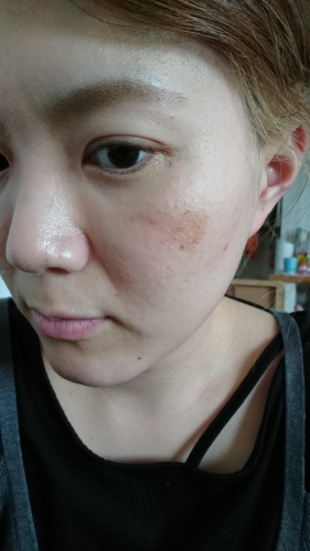左頬の大きなシミ、小さく転々としているクスミ