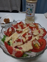 モニプラで、アサムラサキサンのボナペティートすりごまドレッシングのモニターに当選!!rator" style="clear both; textalign center;">いろいろ使えそうですが、先ずはゴマだれとして使ってみました(´∇`艸)この日は冷しゃぶです!冷しゃぶ作ってるときは暑いんだけどねー食欲が沸いてきます!画像では分かりにくいですが、意外とサラッとしていますタレとしては薄いかな?と思いましたが、食べてみると違ってました濃厚でコクがあって美味しい(´∇`艸)実はね、私のお手製ゴマだれも作ってたんです黒いタレがお手製ゴマだれなかなか好評で、レシピ教えてとよく言われる程の自慢のタレなんですよ!で、私のタレと比較してみると、、、私の改良点が見えてきた!ん???つまり、、、、、負けましたね!(笑)いつも目分量で作ってるんですが、徐々に味が狂って来てたんで、どう修正しようか考えてたんです私のは酢が効きすぎなことが食べ比べてみて分かりました濃度と甘み、ゴマの風味はひけを取ってないと思いますが、全体的に微調整が必要かな私のゴマだれは、煎ったゴマをひたすら擦ることから始まります練りゴマみたいになるまでなかなかの重労働ですが、それが一番美味しいって言われるので頑張ってますでも、私の自慢のタレ以上のものが買えるんだ、、、(^^;なんか、悔しいш(>ш<)ш美味しい事は分かったので、今度はサラダにして本来の使い方、ドレッシングにしましたトマトと、キュウリ(隠れてみえないけど(^^;)は、うちのベランダ産です完熟のもぎたてトマトはサイコーに美味しいですよ!大根にゴマドレも相性バツグンなので、美味しいこと間違いナシ!なんだけど、ちょっと残念なのは、意外とサラサラなこのドレッシング野菜に絡みつく力がちょっと足りず、上の方は物足りなく、底の方に溜まってるドレッシングと混ぜ合わせながら食べましたここで自慢私のゴマだれはちゃーんとまとわりつきます!v(´∀`)vま、、味は参考にさせてもらいますけどね、固さは私の勝ち!!(自慢のゴマだれだから、どーしても何か勝ちたいだけです(笑))でも、やっぱり、プロが作るものにはなかなか勝てないものですね(^^;アサムラサキサン!美味しいタレのヒントをありがとう(≧∀≦)目標の味が明確になったので、また勝手に勝負させてもらいますね(笑)アサムラサキファンサイト参加中 続きを見る ['close']