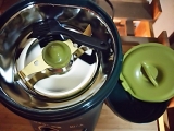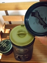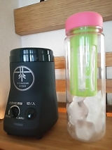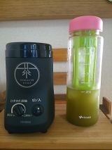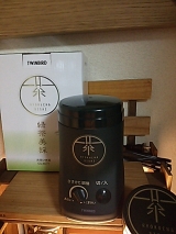 モニプラさんのモニターで、ツインバードさんの緑茶美彩が貰えました!!ヽ(∀)ノsize xlarge;">お茶の葉を挽く機械です粉末にした緑茶を飲むと、茶葉自体の栄養を丸ごと頂けますしかも、お茶飲んだ後にゴミが出ない!(笑)早速開封!写真では黒く見えますが、深い深い緑でカッコイイです蓋は二重になっていて、粉が飛び出ないようになってますお茶を挽く部分は、こんな感じ羽より上に茶葉を入れてはいけないそうです外蓋の裏側にはブラシが付いていますこれなら挽いた後すぐに使えるし、『あの小さいブラシどこに行った?!』と引き出しの中を慌てて探さなくてもすみます(^▽^)挽き具合は無段階調整で、時間がくると自動で止まる仕組みですまだかな?まだかな?と何度も開けて確認しなくて済みそうですね(⌒▽⌒)挽いた粉茶を保管する缶も付いてました!これは気が利くアイテムです(^ω^)一通り記念撮影が終わったので、早速使ってみました少し茎っぽい部分のある茶葉ですが、柔らかめなので大丈夫かな?羽より下に茶葉を入れて、一番細かいモードに設定!スイッチオン!音は大きめです(笑)同じ部屋で誰か寝てたら起きますねコーヒーミルの音に比べたら全然マシしばらくしてお茶が細かくなってくるとモーター音だけになってきました予定通り自動で停止1分ちょっとでしたワクワクしながらオープン!!!めっちゃ細かい!!!ヽ(^∇^)ノ茎っぽい部分は若干残ってしまったけど、許容範囲ですねフフって笑った鼻息でちょっと散らかるくらいの細かさです(笑)この粉を付属の缶に入れてと、、、ん??缶、大きいですねかなり(^^;ミル部分と本体が一体構造なので、本体ごと傾けて粉を掻き出すがちょっと使いにくかったですでも、もし缶の直径がもっと小さかったら、粉末茶を移し換えるのが大変になるので、缶の大きさはこれで善しです( ・∀・)この日の夕飯は海鮮丼!海鮮丼の締めには海鮮茶漬け!ってことで、付属のレシピ本にも載ってたお茶漬けですゴマもネギも切らしてたので、三ツ葉とわさびと塩ひとつまみそして細かい粉末茶を振りかけてお湯を注ぐだけ(^^)当然、美味しいです!今回使ったお茶は、安いお茶なんです後から紹介する水出し水筒がオマケで付いて来るからってだけで買った安い安いお茶(笑)普通に急須で飲んでも旨味もあまりなく、1煎出したら終わりのお茶そんな安い茶葉でも良い苦みと風味がしっかり出てましたこれは使えるヽ(∀)ノ続いて、お茶パスタとか作ってみました付属のレシピ本に別の作り方でパスタがあるんですが、パスタ作った後に気付いたのでオリジナル茶パスタです結構たくさん粉末茶を使いましたが、オリーブオイルとの相性も良かったです粉末茶を、冷たいお茶として飲むときは、少量のお茶で溶いてから冷たい水で薄めるのが基本の作り方ですが、レシピ本には水だけで淹れた方がまろやかになると書いてますそこで、水だけで試してみたんですがなーんかイマイチよくかき混ぜてもどうも味が馴染まないそこで、氷水出しにしてみました!前にオマケの水筒目当てで安いお茶を買った時の水出し水筒の登場です(笑)茶葉を入れる部分に粉末茶と氷を入れて氷が自然に溶けていくのを待ちながら抽出するという、なんとも気の長い話なんですが、、、(笑)茶葉を入れるカゴの氷が溶けるとまた氷を足します3時間経過カゴの底まで溜まりました雑菌が繁殖しないようにカゴの下にも常に氷を足しています粉末茶はとても細かいので、カゴの底まで氷水がたまる頃には殆どの粉末が下に落ちてます茶葉が落ちきったら、更に氷を足して濃度を調整して頂きます何故かメロンのような爽やかな香りが漂う美味しい氷水出し緑茶の出来上がり!付属のスプーンに山盛り5杯で300ccぐらいがお気に入りの配分です(安っい茶葉使用(^^;))粉末緑茶、なかなか使えますよ(o^')b緑茶塩にしたり、バニラアイスにトッピングしたりとアクセント的な使い方もしてみましたその他にも、レシピ本にはドレッシングやグラタン、鶏天なども載っているのでこれからの活用法も広がりそうです本当は、炊飯器で粉末緑茶入りケーキや、ベランダのハーブで粉末茶も作ろうと思ってたんですが、配分に悩んだり暑さに意欲が低減したりでこのブログには間に合わずベランダではミントがボーボーに伸びてきてます(^^;我が家に緑茶美彩がやってきてから1ヵ月近く経ちます使った後の手入れが若干面倒なものの、急須を使わずにすぐお茶が飲めるのでなかなかの活躍ぶり!粉末にすると茶葉が少量でもしっかりとしたお茶が出るので、夏場でも熱いお茶を飲む私には本当に価値がある一品でした٩(๑^︶^๑)۶実は私、以前にもツインバード製品を使ったことがあるんですツインバード製品との出会いは、ポータブルテレビ台所用の小さいテレビをずーっと探してた時でした他社のは電源がコンセントか電池式のどちらかだけだったり、余計な機能が備わってたりして値段も高く、高温多湿の台所で使うには勇気がいるような製品ばかり