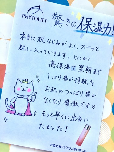 ずっとほうれい線や乾燥が気になっていましたが、ハリを感じるようになりました次の日のファンデのノリも全然違いますので、厚塗りする必要がなくなり、お肌の負担も減ることに繋がったなと嬉しく思います♪