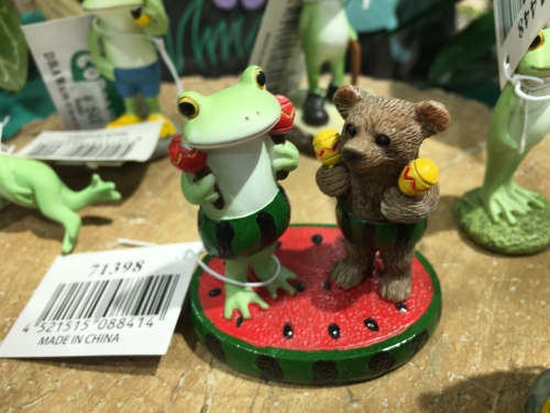 買い物に行った際友達がスイカが好きなのでよく目に付くがカエルの顔がとても可愛い友達に送ったら可愛い!と返事が来たスイカが可愛いらしい私にはわからない
