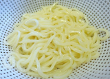 香川県の名産という「讃岐うどん」県名を「うどん県」に変更する!と先の県議会で決定しました(それはウソ!) 本場香川の本格讃岐うどんをいただきました 「亀城庵」さんの「半生さぬきうどん並切麺」「つけつゆ」「かけつゆ」もセットです ちなみに「亀城庵」は、讃岐うどんのメーカー(株)讃匠の通販ブランド 運営会社の(株)讃匠は、こんな会社です 1975年創業の(株)大和製作所が出発 当初は機械設計業でしたが、製麺機を製造するようになりました 1984年に、その社長藤井薫氏が、丸亀城のお堀端の自宅に小さな工房を建ててうどんを打ち始めたこれが「麺研究室(ジャパンフードリサーチ)」の創業 そして1986年、(株)讃匠を設立して本格的にうどんの販売を開始しました (株)大和製作所は、製麺機メーカーですが、麺ビジネスのサポート事業を行っています ⇒(株)讃匠HP:http//wwwmenorosicom/ ⇒(株)大和製作所HP:http//wwwyamatomfgcom/ 定番の「並切麺」120gが入った「一膳うどん」 細麺は22mm、並切麺は28mm、太切麺は31mmの太さだそうです うどんの茹で方が書いてあります大きな鍋に、うどんの10倍の水を沸騰させるお湯にうどんを入れて、うどんが浮かんできたら火を弱めて蓋をする差し水はしない並切麺の茹で時間は、釜上げ煮込み67分、かけ温ぶっかけ78分、ざる冷ぶっかけ910分茹で上がったら水でゴシゴシ洗う ということで出来上がりました ちょっと黄色っぽく見えますが、写真のせいです 添付の「濃縮つけつゆ」でいただきました 本醸造醤油、米発酵調味料、うるめいわし節、さば節、そうだかつお節、こんぶ、かつお節エキスなどを使った汁です 真っ白い麺は、モチモチとした粘りがあって、コシのしっかりした麺です これ、おいしい!と、カミサンも息子も大満足 自宅で本格的な讃岐うどんを楽しめます 天ぷらとかをしっかり用意すればよかったなぁ ともあれ、ごちそうさまでした 続きを見る ['close']