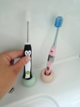 こんにちは="24" alt="ルンルン">最近、やたら一日が終わるのが早い!あれもしたい!これもしたい!あれもやらなきゃ…これもやらなきゃ…の毎日今週末には12月になると思うと信じられない気持ちでいっぱいです(笑)さて、2回ご紹介してきた子供用イオン歯ブラシ ペンギンさんのSmart KISS YOU ですが娘も毎日気に入って使ってくれているのでまたご紹介させてください(^_^)歯みがき粉がなくてもツルツルに磨けるので、一人で磨くときにとても良いです!子供用の歯みがき粉は美味しい味付きなので、一人磨きの時に付けてあげると先に食べちゃうんですよね… うちのコだけ…!?!なので仕上げ磨きの時にだけフッ素のジェルを付けてみがいています大人用のKISS YOU とは違いハンドルの黒い部分に手がさわっていればイオンが出るので小さい手の子供にも使いやすいですここまで良いことばっかりで嘘くささがあったかと思うので、ちょっと欠点も…薄々お気付きの方もいらっしゃるかと思うのですが、この歯ブラシのハンドル部分が結構太いんです…恐らく、一般的な歯ブラシ立てには入らないんじゃないかな?うちの洗面台は歯ブラシスタンドがついていなかったので、冷蔵庫用のチューブ調味料立てを使ってるんですが、この調味料立てでギリギリ入ってる感じです因みに、無印の陶器の歯ブラシスタンドだと…全然入らなーーーい!!大人用のKISS YOU は入ります!!これが欠点かなと思っています他所のお家はSmart KISS YOU をどうやってしまってるんだろうな…まぁ、それでも我が家では何の問題なく良いところだけで使っているので全力でオススメします(>∀<)フクバデンタル Smart KISS YOU お近くのドラッグストアなどで見かけない場合は、こちらから購入できますKISS YOUファンサイト参加中 続きを見る['close']