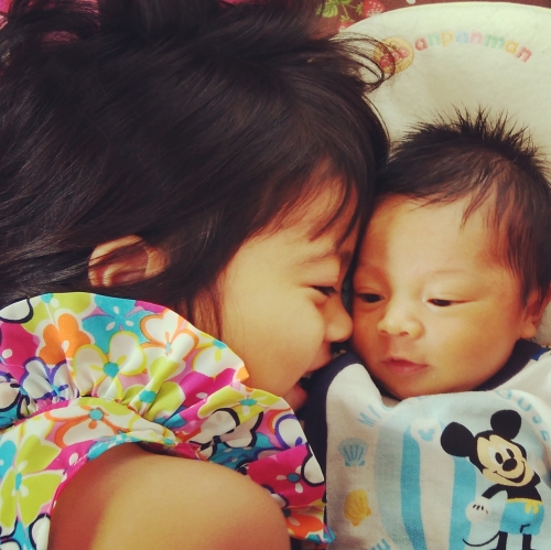産まれて始めてるの姉弟写真♡家族が増えて改めて幸せだなぁと感じる瞬間でした